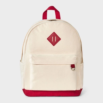 Collegiate dome backpack from Wild Fable™ in a solid hue with 100% cotton fabric construction. Features exterior, interior and side pockets plus a laptop pocket that fits laptops up to 12 inches. Includes a main zipper closure plus adjustable backpack straps and a top handle for versatile carrying options.