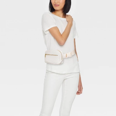 Solid-hued, structured crossbody bag with a wide adjustable strap for comfortable carrying. Features an exterior zip pocket to access items like lip balm and hair ties, as well as a top zip closure opening up to a roomy interior for the rest of your essentials.