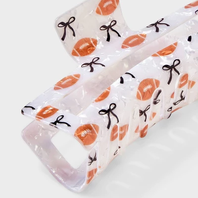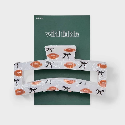 Rectangular gameday claw hair clip from Wild Fable™. Made from acrylic, aluminum and plastic in white with football and bow prints. Helps secure and style hair and is suitable for all hair types.