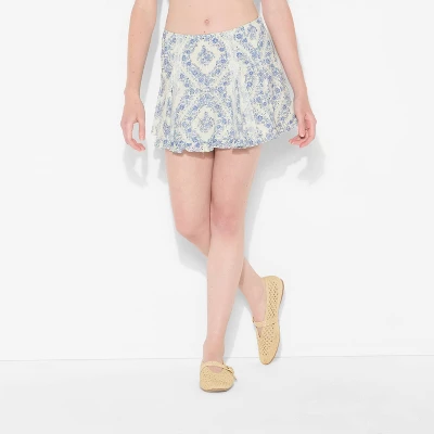 Godet full skirt from Wild Fable™ with an above-knee silhouette. Tailored in a mid-rise cut with a classic fit. Made from a lightweight cotton for breathable, comfortable all-day wear. Pull-on waistband with a side zipper completes the design and provides a sleek look.