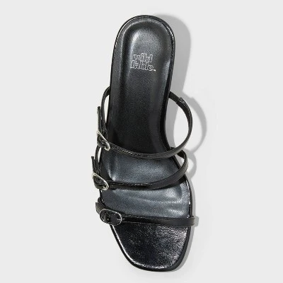 Asterin triple-buckle heels from Wild Fable™ in solid black with a 2.5-inch block heel. Feature a square open-toe silhouette with a triple slim-strap design featuring buckles for a customizable fit. Cushioned memory foam insoles provide all-day comfortable wear.