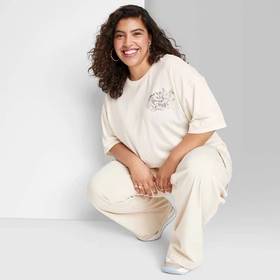 Oversized printed crewneck tee from Wild Fable™. Year-round jersey fabric construction for comfortable wear. Designed in an oversized silhouette with elbow-length raglan sleeves.