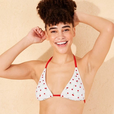 Women’s Embroidered Cherry Tall Triangle Bikini Top – Wild Fable™ White/Red
