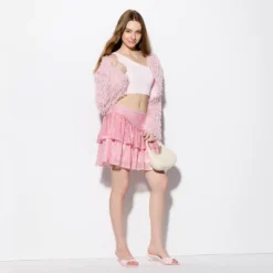 Get a new look for cooler days with the Women’s Feather Bolero Jacket from Wild Fable™ in pink, size XS. Made from durable midweight polyester material, this jacket is soft, stylish, and easy to wear. It features a full lining for added comfort and a pullover style that keeps things simple. The feather detailing adds a playful texture, making it a fun layer for casual outings or dressing up a basic outfit.