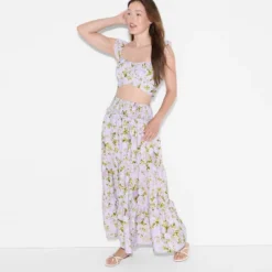 Scoop-neck micro top from Wild Fable™. Tailored in a regular-fit silhouette with a scoop neckline and short flutter sleeves. Made of lightweight recycled polyester fabric. Wrap-front hem with a back-tie fastening completes the look and provides a stay-put fit.