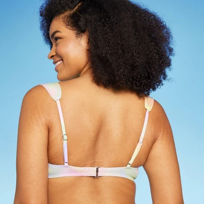 Underwire bikini top from Wild Fable™ with a mesh overlay and a seamless swirl print in soft colors. Made from soft fabric with four-way stretch and full lining for flexible comfort in and out of the water. Removable cups offer customizable coverage. Adjustable shoulder straps and a back strap with hook fastening complete the look and provide a secure fit.