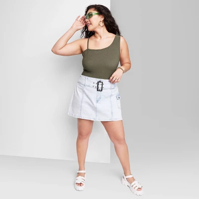 Knit bodysuit from Wild Fable™ in a solid hue. Features an asymmetrical neckline with regular sleeveless style on the left shoulder, paired with an adjustable slender strap on the right. Tailored in a slim-fit silhouette and made of heavyweight recycled polyester with spandex for comfortable, flexible wear. The open back and statement cutouts complete the look.