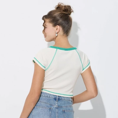 The Women’s Raglan Cap Sleeve Shoulder Ruched Ribbed Top from Wild Fable™ is a fresh twist on your everyday essential. Crafted from lightweight knit fabric with a ribbed finish, this top adds soft style to your everyday look. The boat neckline and cap raglan sleeves offer a relaxed, flattering silhouette, while the at-hip length makes it perfect for tucking into high-waisted jeans or letting it drape naturally. With its casual fit and polished details, it’s a go-to piece for everything from laid-back weekends to dressed-up casual looks.