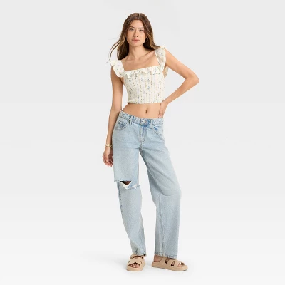 Smocked tank top from Wild Fable™ designed with ruffled frill accenting the front, back and shoulders. Tailored in a sleeveless, regular-fit silhouette with a mid length. Made from a lightweight blend of cotton, nylon and spandex for flexible wear that moves with you.