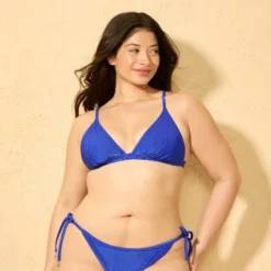 Ribbed triangle bikini top from Wild Fable™ in a solid shade and shiny finish. Made from a soft blend of nylon and spandex with full lining for flexible comfort in and out of the water. Slender shoulder straps with buckles and a back hook strap complete the design, providing a personalized, stay-put fit.