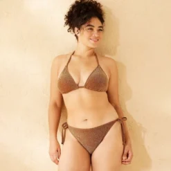 Sparkle bikini bottom from Wild Fable™ in hipster style. Features side-tie fastening to provide a personalized fit. Made from nylon-spandex blend with metallic fibers for a touch of shine and a full lining for comfortable wear. Cheeky coverage and a low-rise, high-leg silhouette finish off the chic look.