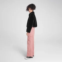 Stay stylish this fall and winter with our zip-front faux fur jacket. Featuring a stand-up collar and a cozy fuzzy texture, this loose-fit jacket ensures comfort. Side pockets add practicality, while elastic bands at the hem and sleeve cuffs create a stylish bubble effect. Available in classic black, cream, and trendy leopard print, it’s the perfect blend of fashion and function.